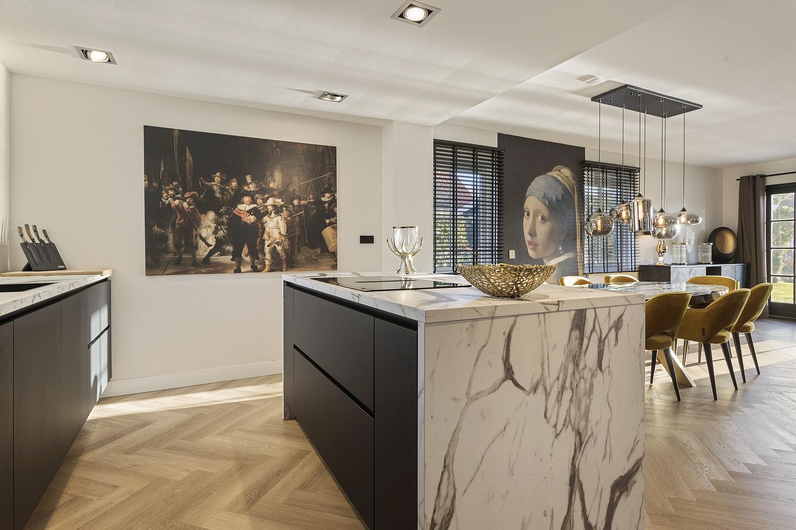 - Luxe open keuken met kookeiland – voorzien van moderne inbouwapparatuur zoals inductiekookplaat, stoomoven en combimagnetron