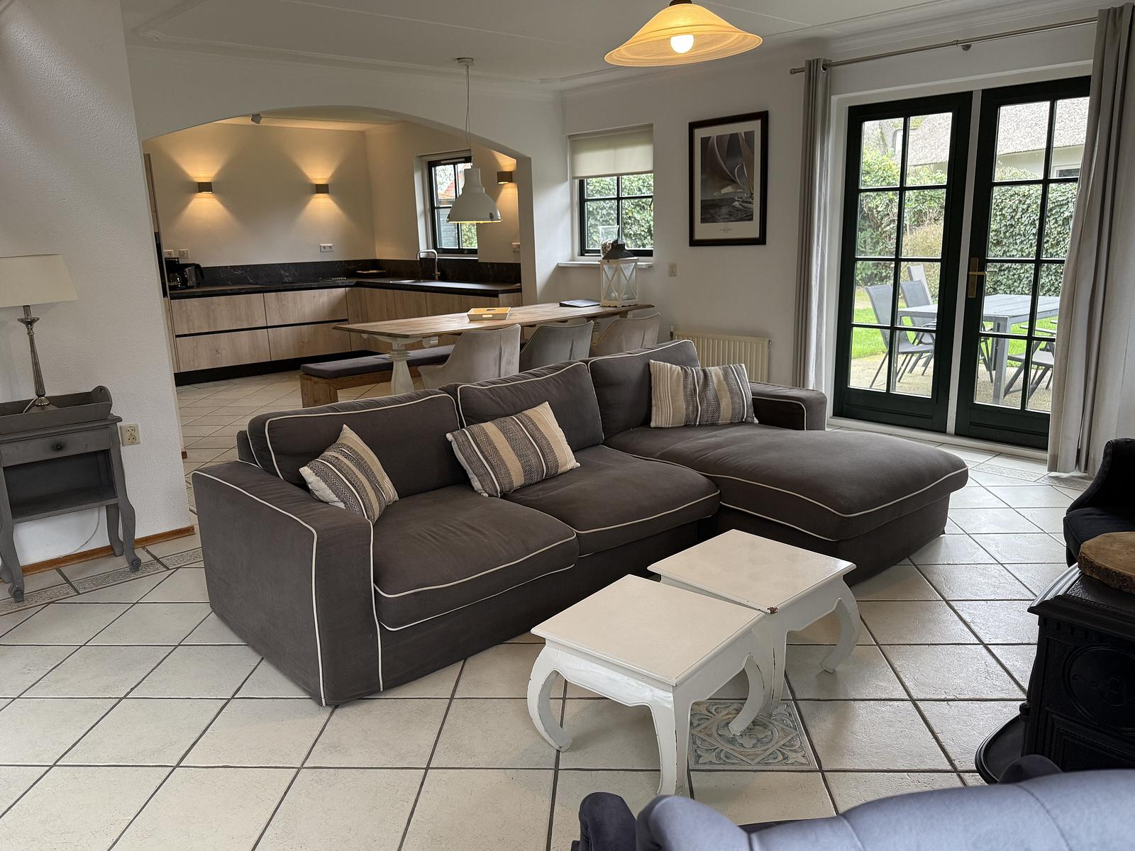 Woonkamer: Ruim en licht, met openslaande deuren naar de tuin. De gezellige zithoek en royale eettafel maken dit de ideale plek voor lange avonden met familie of vrienden.