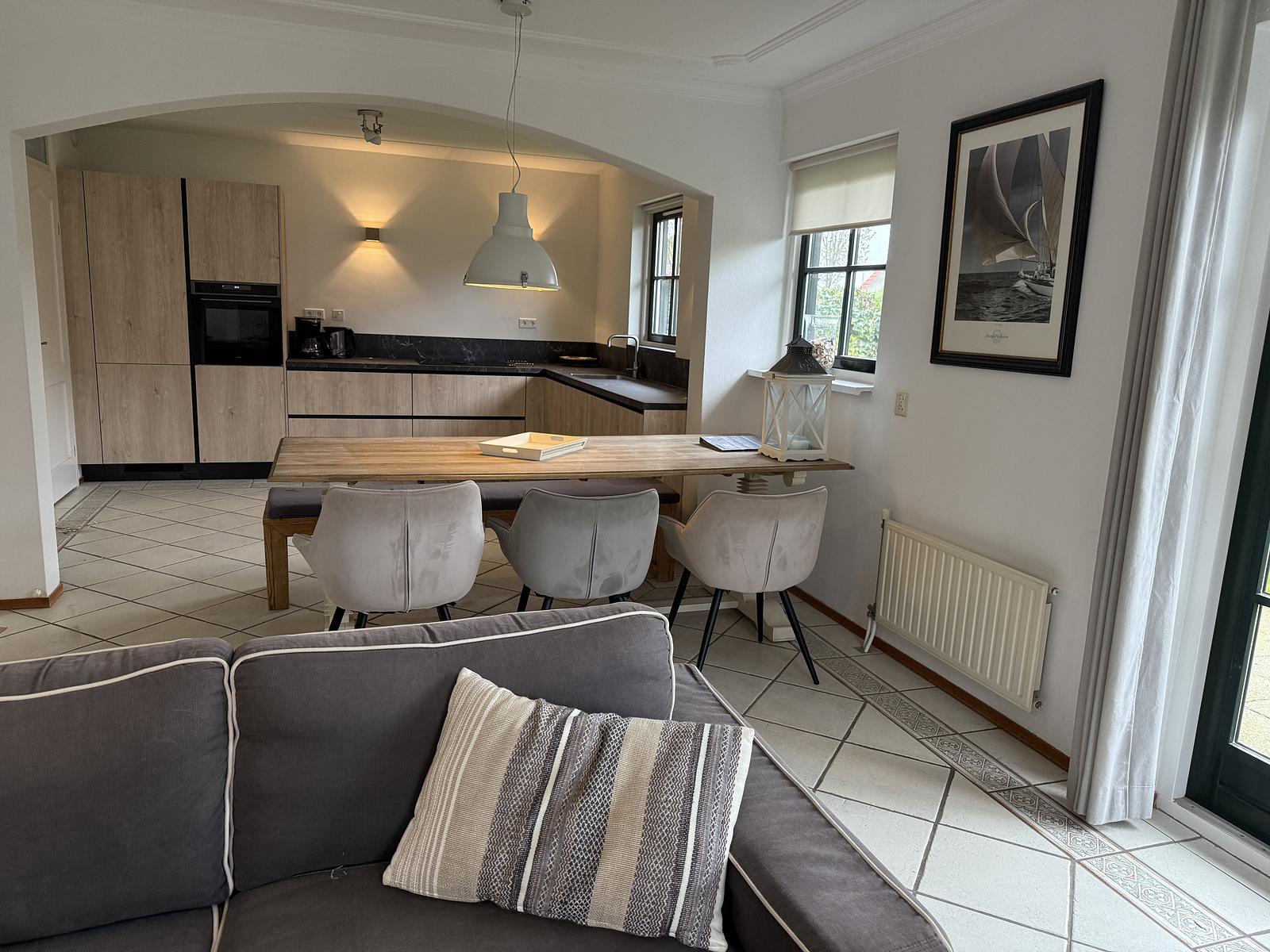 Open keuken: Recent vernieuwd en luxe uitgevoerd met hoogwaardige inbouwapparatuur. De keuken is voorzien van een Bora inductiekookplaat met geïntegreerde afzuiging en een koelkast met koel-/vriescombinatie. Dankzij de slimme indeling en ruime werkbladen is dit een fijne plek om te koken en samen te komen.